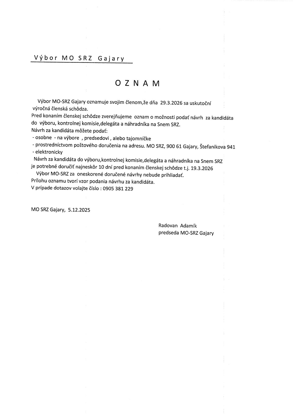 Ak máš záujem pracovať vo výbore ,v komisiách alebo byť delegát na snem SRZ v roku 2026 použi nasledovné tlačivo